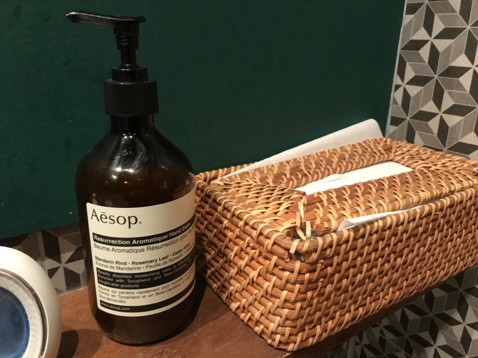 청담몽로 화장실에는 손 세정제가 이솝 Aesop 걸로 준비되어 있다.